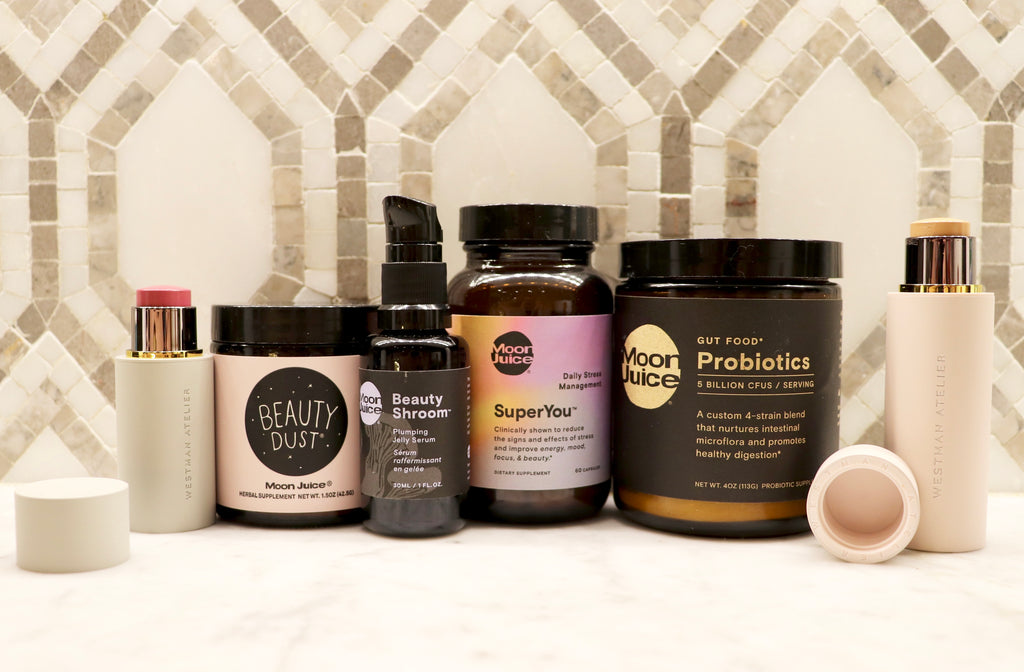 GUCCI: Hi Amanda! Thank you for making time to chat—you’ve just had a baby! Congrats! Guess what? I’m sitting here in my kitchen with Moon Juice mango slices and almonds and the flax crackers. We have all of your snacks. I take your Beauty Shroom almost every day and my kids have it in their shakes. It’s so hard to keep them from detecting when something’s healthy but in this case, they have no idea!