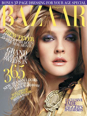 Memorable jobs like Drew's makeup for the Charlie's Angels world tour and a series of Harper's Bazaar covers followed, one of which was an early precursor for a striking Lancôme campaign featuring Barrymore in sky blue eyeshadow during Gucci's tenure as the beauty brand's International Artistic Director. "Another favorite was a shoot for Pop Magazine where Drew had slick, wet hair and makeup that took cues from Elvis."