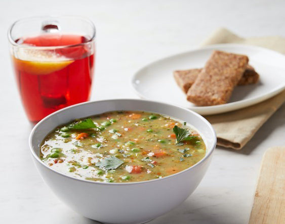 The Routine: Along with the pre-made meals delivered in two shipments, you receive a pack of supplements, a dry brush, peppermint digestive teas, mineral-packed Beauty Drops, and chlorophyll-based Detox Drops. A twice-daily dry brushing ritual allows the body to detoxify, too, while internal healing is happening with food. I felt very hydrated on a typical day because adding the Beauty or Detox drops to my glasses upped my water intake and frankly made it more enjoyable. I ate whole-food breakfasts like the Cinnamon Chia Parfait and lunches like the Rainbow Kitchari, savored the probiotic coconut kefir drink as a snack, and had a medicinal broth dinner, plus tea and regimented supplements after meals. The exception to this is day four—an all-liquid juice/soup day, and day five, where there's a full dinner instead of broth. Throughout the program, dairy, gluten, sugar, grains, nuts, soy, pesticides, chemicals, toxins, alcohol, caffeine, and nightshades are eliminated.