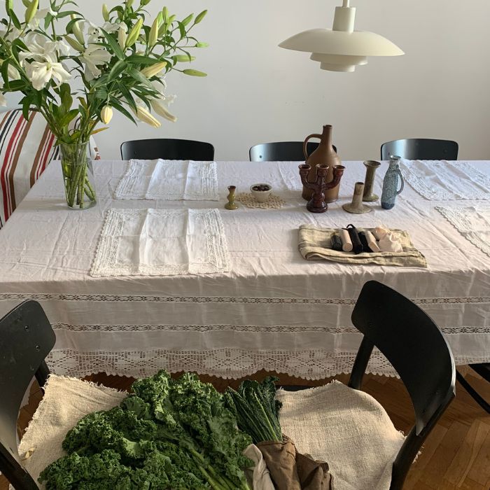 “Creating a meal—and having fun with flavors—is very natural to me,” says model and chef Alex Szwalek. The 26 year-old Polish beauty grew up picking and preparing the produce that grew on her family farm alongside her mother. “We had a kitchen culture in our house,” recalls Szwalek, who is also a lifelong vegetarian. Now, when she’s not working as a coordinator for the World Central Kitchen on the Ukrainian border, she can be found foraging in local forests or making herbal teas and simple fresh dishes in her own Warsaw kitchen.