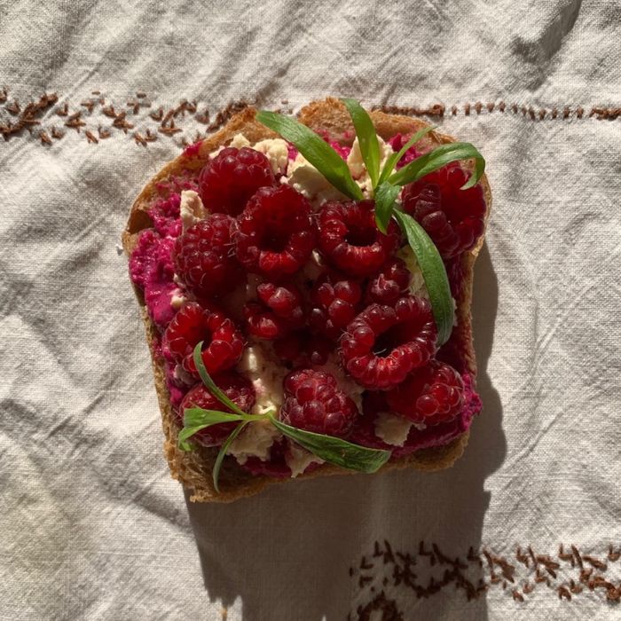 The skin-boosting benefits of Szwalek’s sustainable, seasonal, nutrient-rich approach to food are evident on her Instagram feed. Here, she shares photos of her culinary creations alongside strikingly fresh-faced selfies, which she credits to a plant-based diet—and a pared-back collection of cosmetics that include toner, moisturizer, and Westman Atelier makeup. “I love my magical Complexion Drops,” she says of the serum-strength tinted treatment formula, which she credits, alongside Lit Up Highlight Stick and the Les Nudes lip palette, with a noticeable shift in her complexion and her mood. “I can be on a farm and feel beautiful,” she adds before breaking into a laugh, “even when I’m covered in mud.”