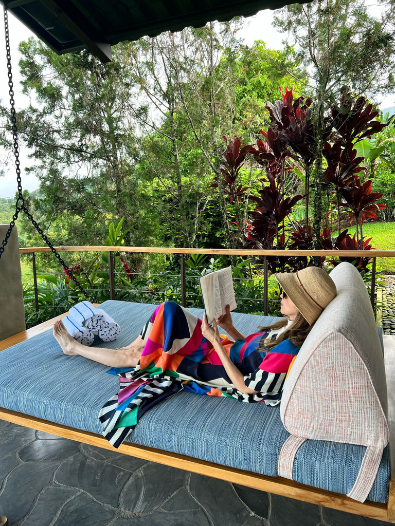 Reading a book from our casita's terrace.