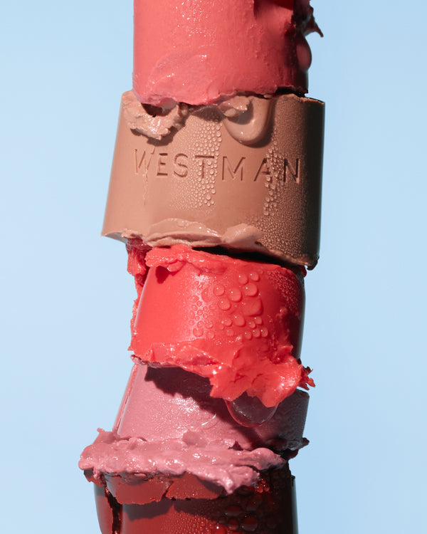 A sheer, tinted lipstick with a subtle, juicy sheen. Buildable color, balm-like feel.